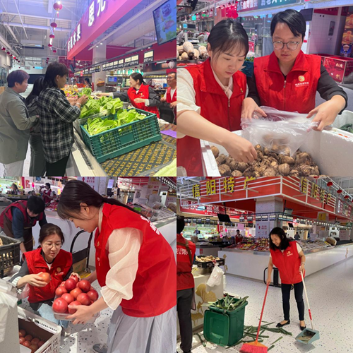 黨員志愿者分組前往市投集市丹楓路市場、未來路市場進行志愿服務。在未來路市場,志愿者協(xié)助檢查、清掃、整理市場衛(wèi)生和攤位,幫助商戶售賣菜品,維護農(nóng)貿(mào)市場整體秩序及衛(wèi)生環(huán)境。在丹楓路市場,黨員志愿者一大早便來到市場,協(xié)助市場早餐商戶為一線環(huán)衛(wèi)工人免費派贈“愛心早餐”,讓環(huán)衛(wèi)工人感受到了城市的溫度和市投集市的溫暖。隨后,黨員志愿者將市場內外地面環(huán)境進行全面清掃,擦洗攤位、墻面等,還對電動車、共享單車停放區(qū)進行了擺放整理,讓市場內部環(huán)境煥然一新。提升了市場文明形象。