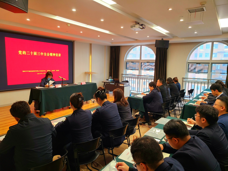 開(kāi)班儀式上,公司黨委書(shū)記、董事長(zhǎng)、總經(jīng)理張海燕結(jié)合個(gè)人參加全市縣處級(jí)干部學(xué)習(xí)貫徹黨的二十屆三中全會(huì)精神輪訓(xùn)班的學(xué)習(xí)收獲和體會(huì),為全體學(xué)員作黨的二十屆三中全會(huì)精神專(zhuān)題宣講,并結(jié)合公司實(shí)際對(duì)干部職工提出希望和要求。