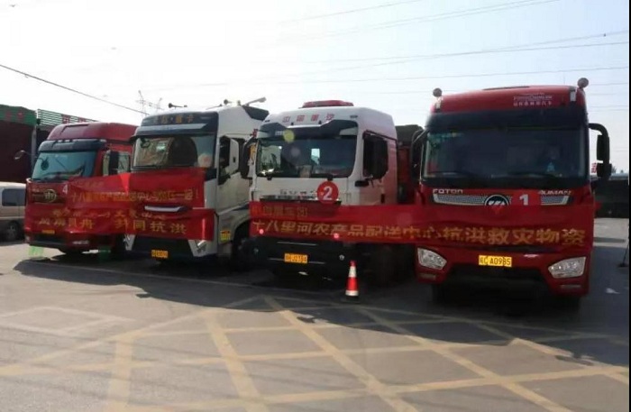 7月26日上午,鄭州市市場(chǎng)發(fā)展中心聯(lián)合十八里河農(nóng)產(chǎn)品配送中心和中歐商學(xué)院舉行賑災(zāi)物資捐贈(zèng)儀式,向我市各地受災(zāi)嚴(yán)重地區(qū)捐贈(zèng)礦泉水、牛奶、面包、方便面等應(yīng)急生活物資。
