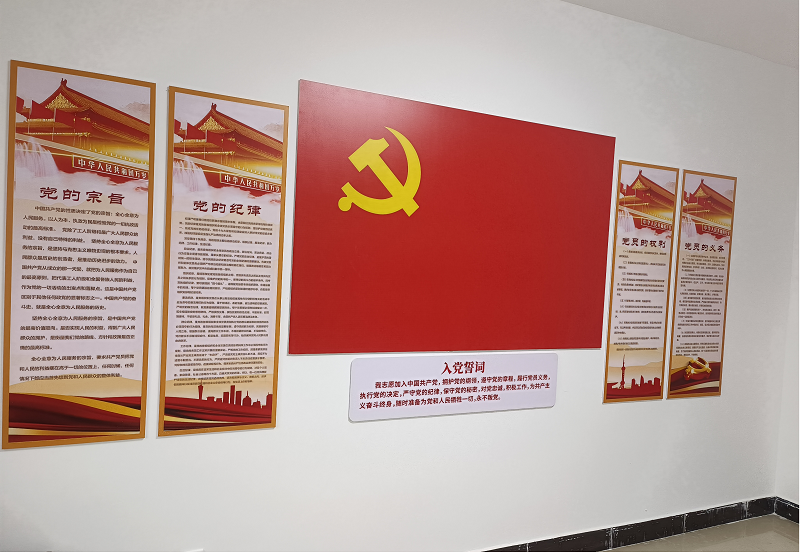 新街巷黨支部陣地建設(shè)由黨員活動室、辦公室一樓、二樓、三樓樓梯和二樓、三樓樓道走廊組成支部文化墻。黨員活動室的創(chuàng)建嚴格按照黨建標(biāo)準(zhǔn)化要求:建設(shè)專屬黨支部活動室,有場所、有設(shè)施、有標(biāo)志、有黨旗、有書報、有制度,在活動室內(nèi)醒目位置懸掛黨旗,并將入黨誓詞、黨員權(quán)利和義務(wù)、黨支部組織機構(gòu)和職責(zé)等上墻。