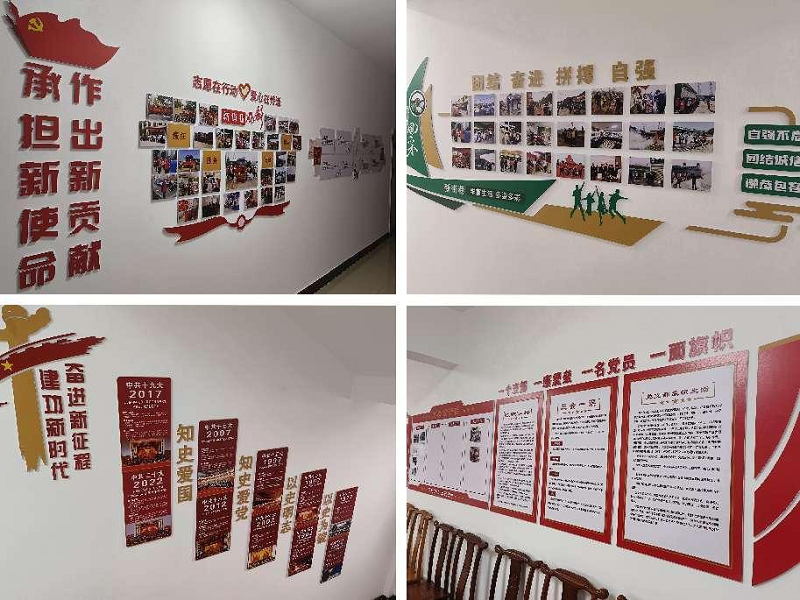 文化墻內(nèi)容包括黨的一大到二十大黨史、四個意識、四個自信、兩個維護、黨員干部職工風(fēng)采、黨建品牌、黨務(wù)公開、黨員示范崗等內(nèi)容,陣地建設(shè)的打造,不僅宣傳了黨建知識、展現(xiàn)了黨員形象,還涵蓋了當(dāng)前黨建工作的重點內(nèi)容,將黨建品牌上墻,可以很直觀的看到黨建深度融入生產(chǎn)經(jīng)營工作取得的實效性做法,可以讓職工群眾更深刻直觀的了解黨員先進形象,同時不斷激勵黨員創(chuàng)先爭優(yōu)、爭做模范,進一步提升了黨建的文化內(nèi)涵,使廣大黨員群眾在潛移默化中了解、支持、深化黨建工作,不斷提升黨建活力,發(fā)揮黨建引領(lǐng)作用。